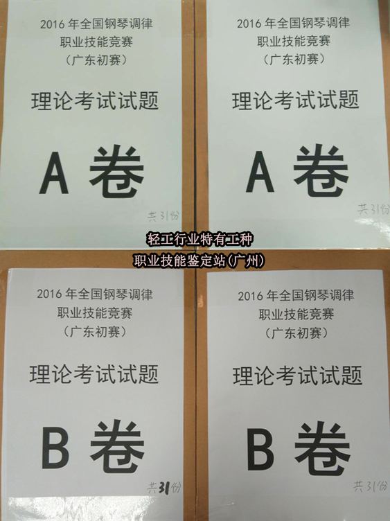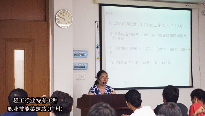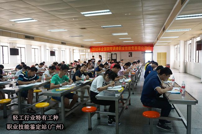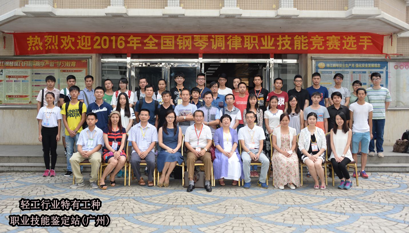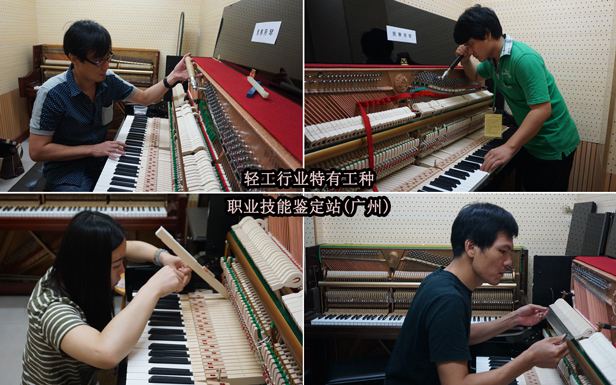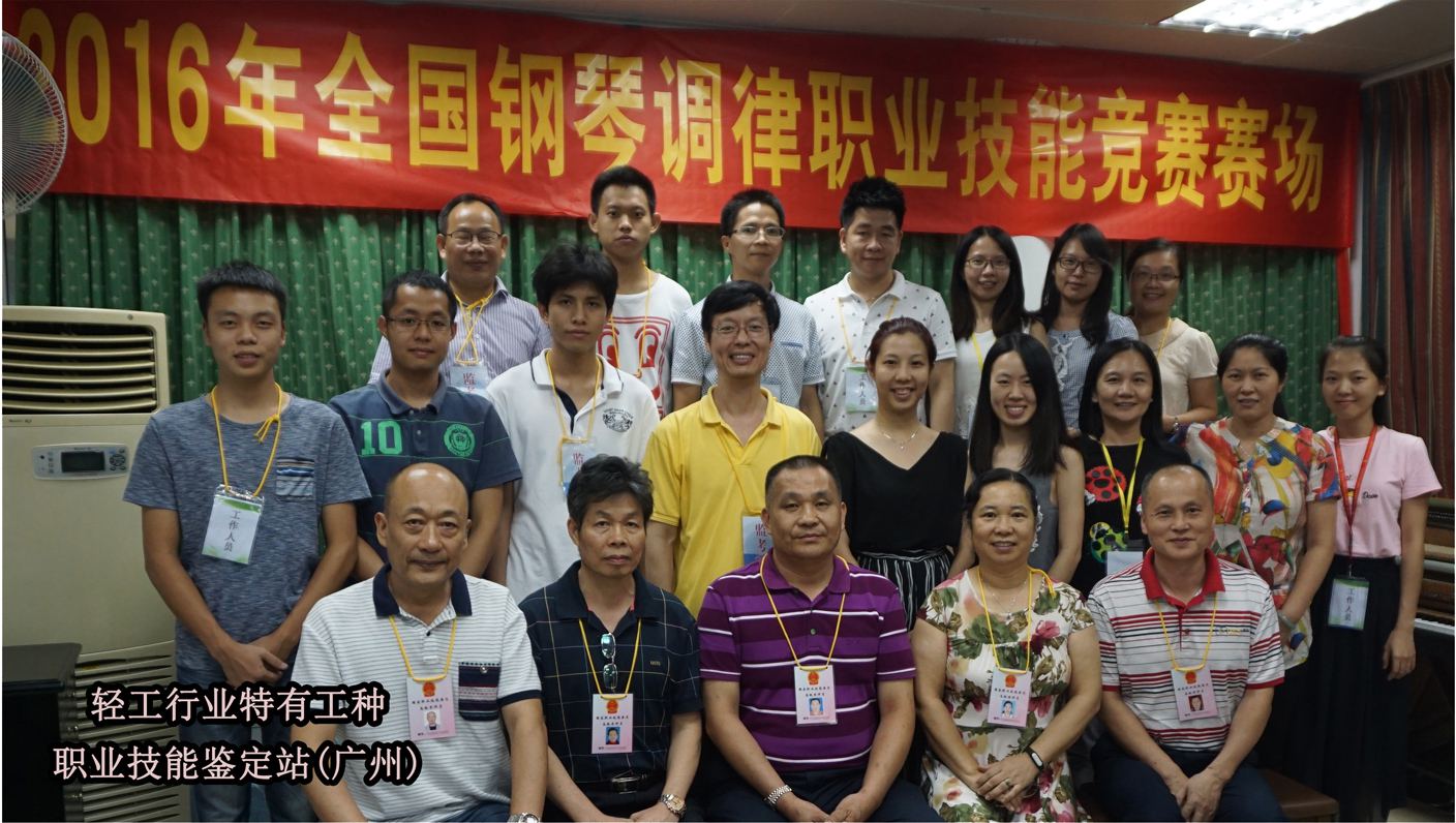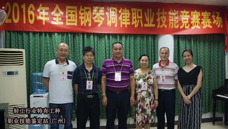 由国家轻工业乐器质量监督检测中心(广州)的专业人员担任竞赛的测音工作,由国家职业技能鉴定高级考评员陈德然老师(左二)担任监评工作。