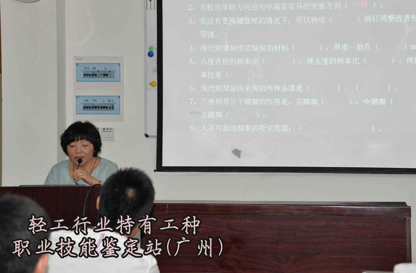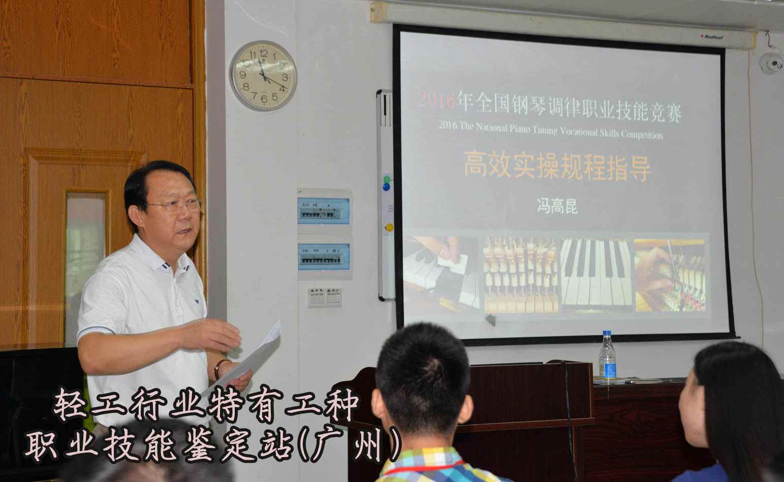 本次复赛组委会邀请到中国乐器协会钢琴调律师分会会长冯高昆老师、副会长兼秘书长秦敏静老师为选手开授专题讲座。图为冯高昆老师认真讲授知识,讲座专题为《高效实操规程指导》。