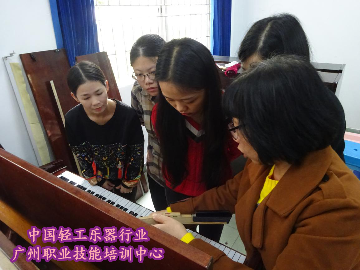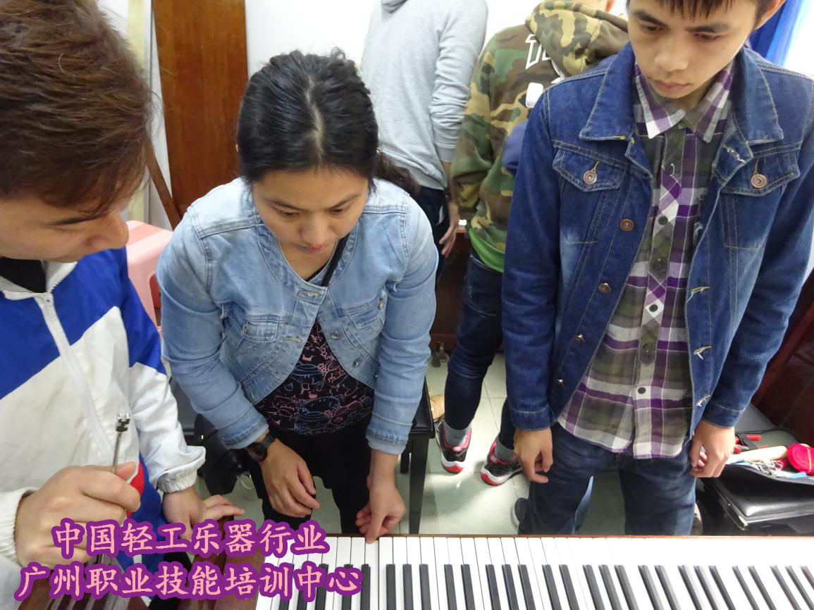 李智豪老师(右二)进行钢琴卡钉调整指导